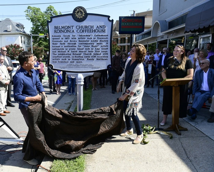 The Nashville Metropolitan Historical Commission, in association with the Nashville Metro Council, celebrated the installation of a historical marker at 1000 16th Avenue South with an unveiling ceremony, honoring decades of the music impact of Belmont Church, Koinonia Coffeehouse and the Contemporary Christian Music (CCM) genre on the city of Nashville. Additionally, a concert of celebration featuring CCM artists who performed at Koinonia during the 1970's, will be held on July 27 at the Koinonia Coffeehouse.