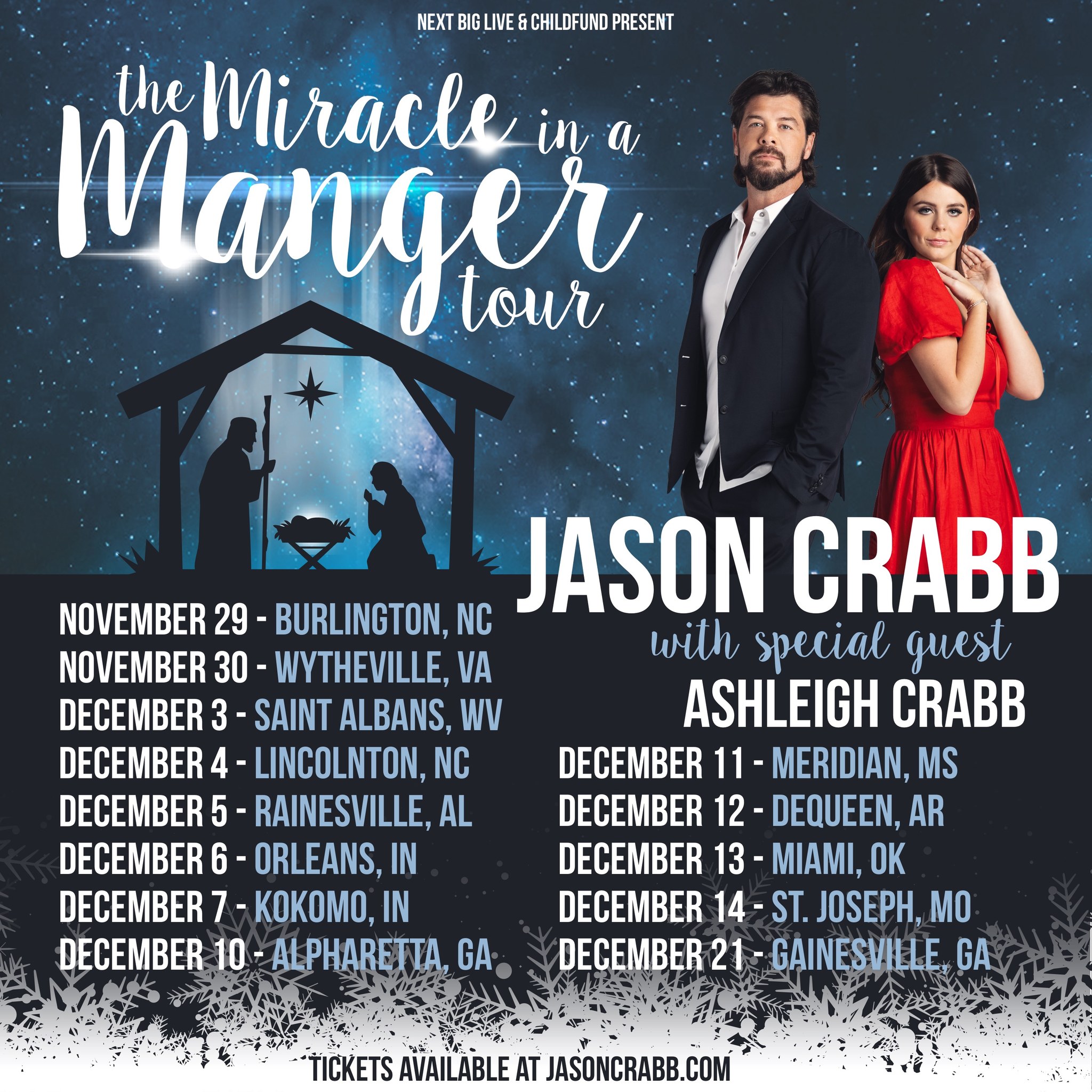 Grammy® Award-winning artist Jason Crabb is bringing back one of the holiday season's most beloved traditions - The Miracle in a Manger Christmas Tour - for 2025. Promising to be bigger, brighter, and more joyful than ever, this year's tour will once again celebrate the true meaning of Christmas through an evening filled with uplifting music, heartfelt stories, and the spirit of hope.