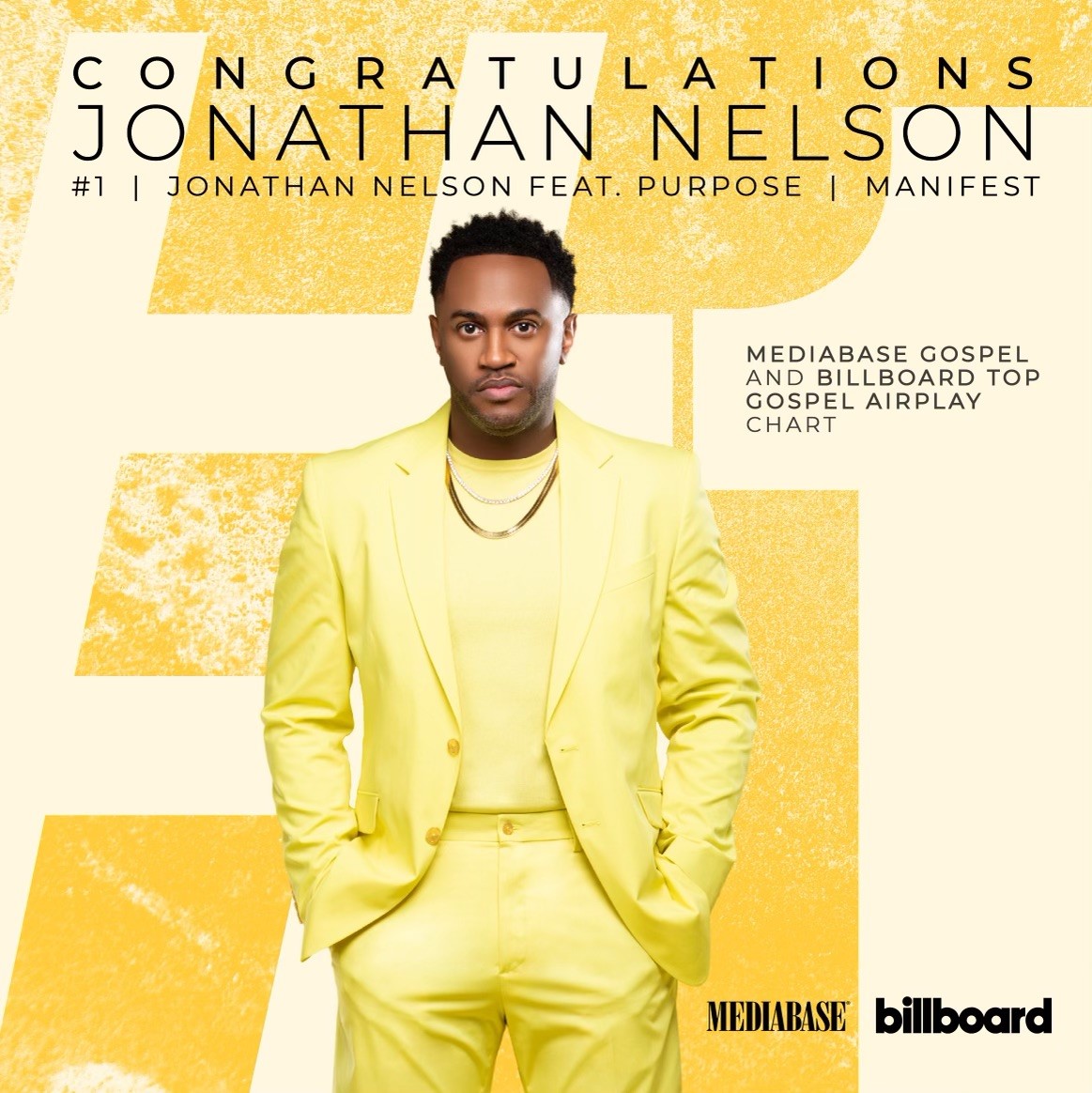 Jonathan Nelson scores his first #1 hit this week. His song "Manifest," the lead single from his album The Reunion, rises to the Number One spot on the Billboard and Mediabase Gospel Radio Charts. Nelson exclaims, "Manifest is such a powerful anthem that is a reminder to each listener that they are empowered to BECOME all that God has designed them to be. Your dreams, endless possibilities, goals and more have to MANIFEST!"