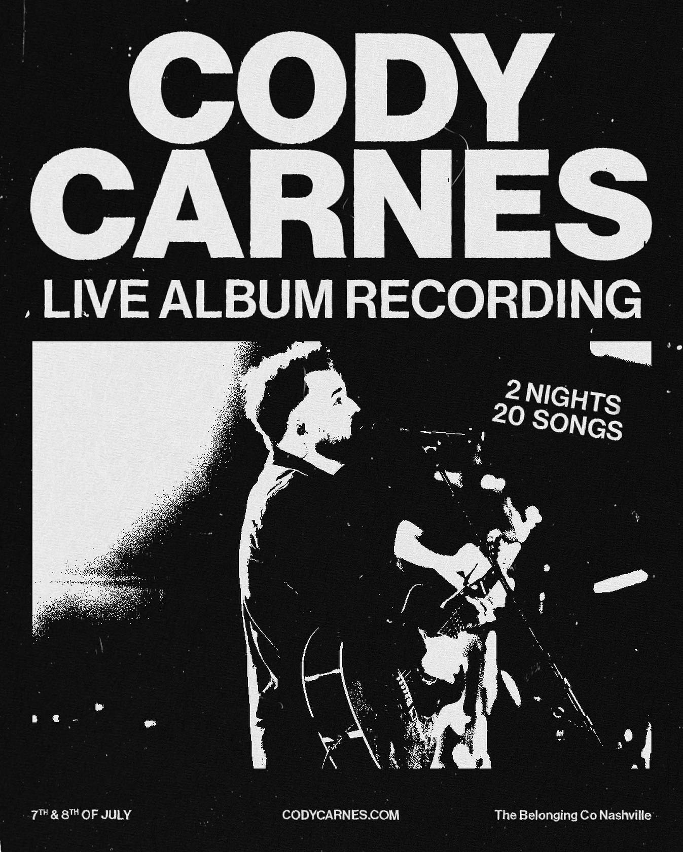 GRAMMY-nominated worship leader Cody Carnes will be recording his first ever live album in Nashville, TN July 7 & 8. All fans are invited to join Carnes on these historic nights. During the two nights, Carnes will be performing at least 20 songs. You can purchase your tickets for the two nights HERE.